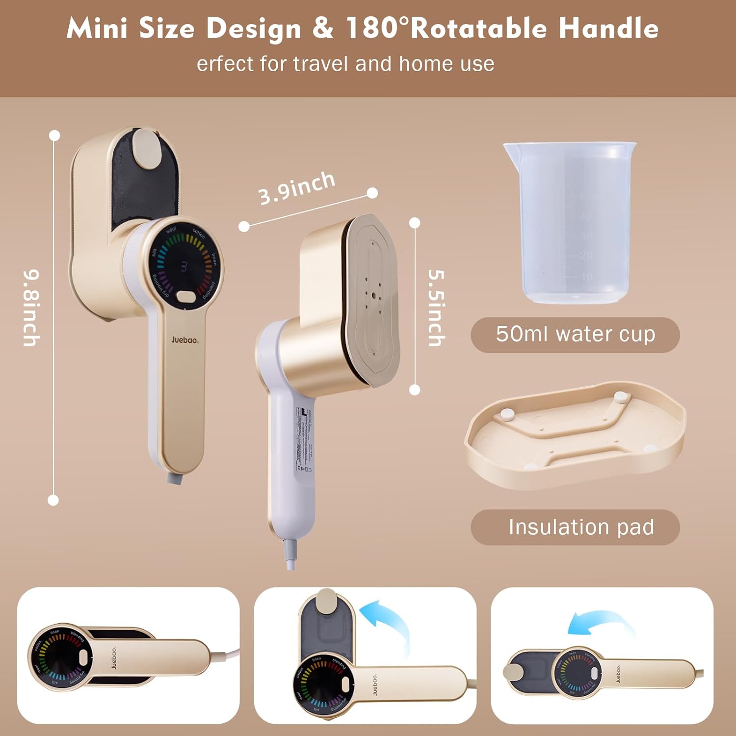 Mini Travel Steamer: Portable steam iron With dimensions of 7.2 x 2.7 x 3.8 inches (18.5 x 7 x 9.8 cm) and a weight of just 1.6 lbs (750g), this compact and lightweight iron easily fits into any suitcase or travel bag. The clothes steamer also makes an ideal gift for friends or family and is a perfect choice for occasions like birthdays, Christmas, Mother's Day, and other holidays.